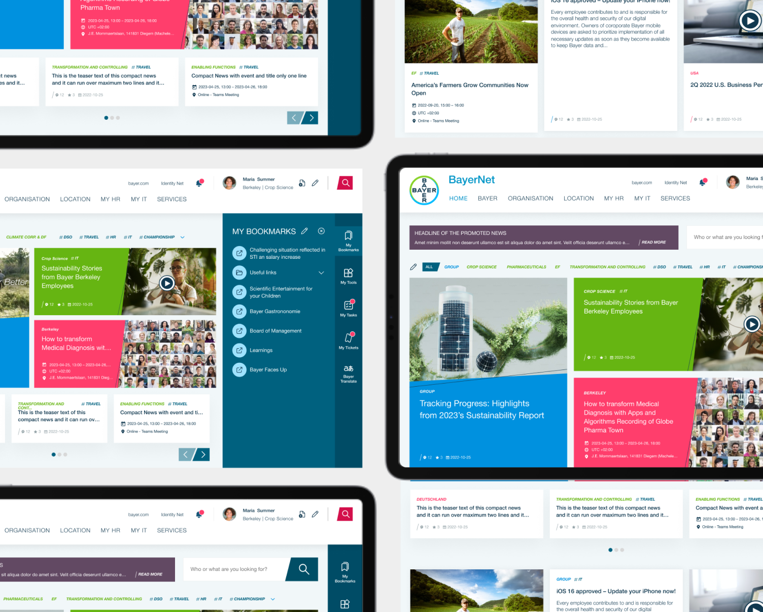 Gemeinsam mit Bayer haben wir aus 350 dezentralen Intranets das BayerNet geschaffen: eine integrierte, nutzerzentrierte Plattform, die globale Kommunikation vereinfacht, die Zusammenarbeit stärkt und IT-Kosten signifikant senkt.